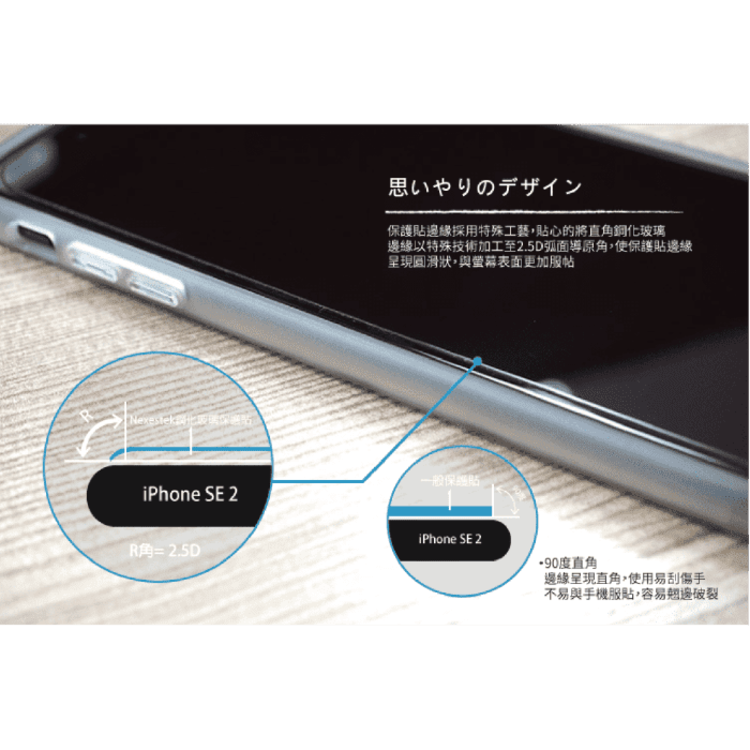 3)保護貼邊緣採用特殊工藝,貼心的將直角鋼化玻璃邊緣以特殊技術加工至2.5D弧面導原角,使保護貼邊緣呈現圓滑狀,與螢幕表面更加服帖