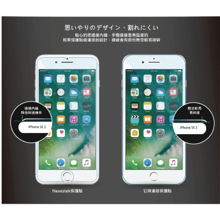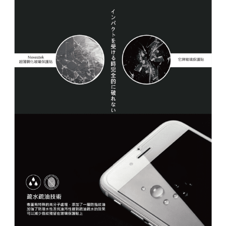 6)Nexestek鋼化玻璃貼觸感滑順,消除了一般市售PET觸摸時的生澀感,Nexestek鋼化玻璃以獨家特殊技術加工